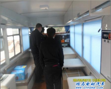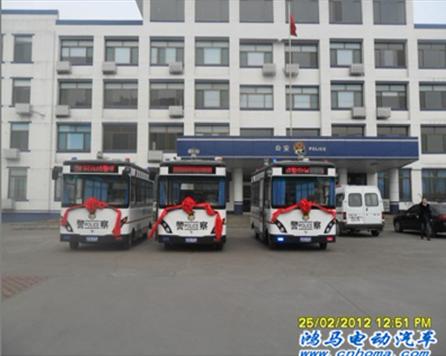 2012年2月24日下午,三臺(tái)白色車身的鴻馬流動(dòng)警務(wù)室在鴻馬電動(dòng)汽車公司長葛生產(chǎn)基地整裝待發(fā),即將前往山東上崗執(zhí)勤。這是自山東桓臺(tái)流動(dòng)警務(wù)室 、山東魚臺(tái)移動(dòng)警務(wù)站、山東濟(jì)寧市嘉祥縣“配備”流動(dòng)警務(wù)室、高唐縣交警大隊(duì)流動(dòng)警務(wù)站等等后,發(fā)往山東高新區(qū)的移動(dòng)警務(wù)室。