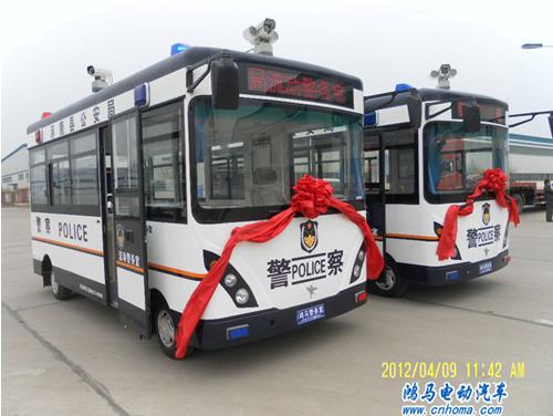 2012年4月9日上午,在河南森源鴻馬電動(dòng)汽車公司長(zhǎng)葛生產(chǎn)基地舉行張家口涿鹿縣警用便民移動(dòng)警務(wù)室發(fā)車儀式。