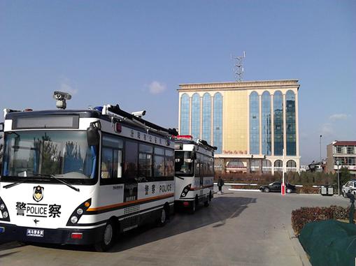 2臺鴻馬流動警務(wù)室在汾陽市汾孝大道執(zhí)勤