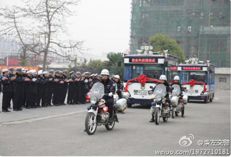 1月11日上午,廣西省崇左市公安局交警支隊的流動警務(wù)室于今日在交警指揮中心舉行交車儀式。