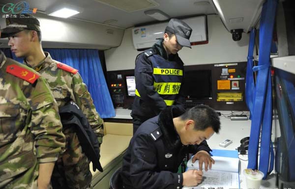 傍晚9時(shí),記者和跟隨彭黔川、江郎兩位特警來(lái)到了他們執(zhí)勤的云關(guān)收費(fèi)站駐地。他們?cè)谝雇碇饕?fù)責(zé)對(duì)進(jìn)入城區(qū)的車輛進(jìn)行抽查,在春運(yùn)期間,客運(yùn)車輛是檢查的重點(diǎn)目標(biāo),彭警官告訴記者“在春運(yùn)期間,我們主要是檢查的工作有兩點(diǎn),其一是旅客是否有攜帶危害客運(yùn)安全的違禁物品,第二是對(duì)車主的資料和旅客的身份進(jìn)行盤查,努力確保旅客們能夠平平安安的回家!
