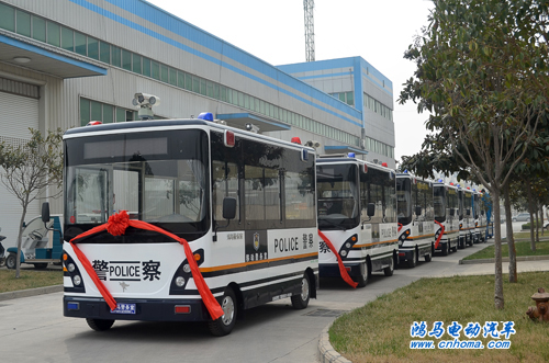 3月19日下午,在河南森源鴻馬電動汽車公司舉行山東聊城東昌府公安分局8臺流動警務室發(fā)車儀式。