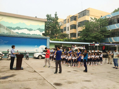 2015年5月27日上午,邢臺(tái)交警開展以“情暖六一、文明出行交通安全宣傳教育活動(dòng)”為主題的“警營(yíng)開放日”活動(dòng),活動(dòng)當(dāng)天來(lái)自邢臺(tái)市青少年宮的師生應(yīng)邀走進(jìn)警營(yíng),零距離了解交警工作,學(xué)習(xí)交通安全知識(shí)。