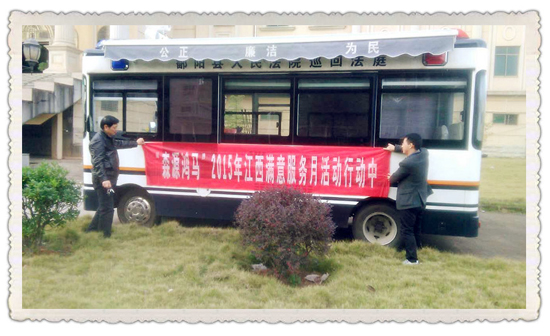 11月26日上午,江西售后服務(wù)工程師黃樂華來到鄱陽縣人民法院,為其正在投用的鴻馬移動法庭進行點檢、維護、保養(yǎng)。他專業(yè)、細(xì)致、貼心的服務(wù)受到了鄱陽法院領(lǐng)導(dǎo)的好評。