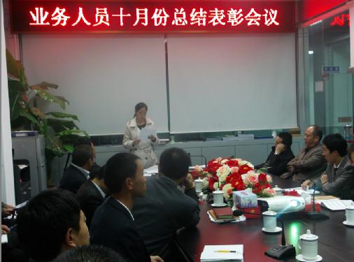 10月31日,河南鴻馬電動汽車有限公司舉行業(yè)務員10月份總結(jié)表彰會議。公司總經(jīng)理馬鴻軍、全體業(yè)務人員集聚一堂,意在總結(jié)、提高,并且周密部署下階段更加卓有成效的市場沖鋒。此次的會議最重要的是要力爭解決一些困擾銷售工作的重要問題,統(tǒng)一思想,群策群力、集思廣益,共同研究制定有效的市場戰(zhàn)略。