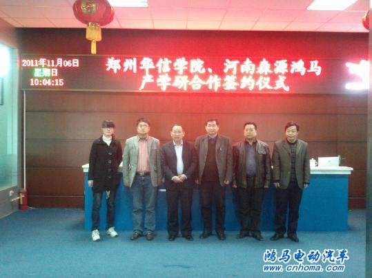 11月5日,鄭州華信學(xué)院和河南森源鴻馬(以下簡稱鴻馬)電動汽車產(chǎn)學(xué)研合作簽約儀式在鴻馬電動汽車3樓大會議室舉行。