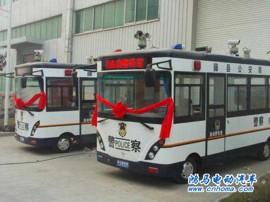 2012年1月9日,梧州藤縣公安局采購的兩臺鴻馬移動警務車在鴻馬電動汽車工業(yè)園區(qū)發(fā)車。這是繼梧州市公安局流動警務室以后又一次發(fā)往廣西的鴻馬移動警務車。